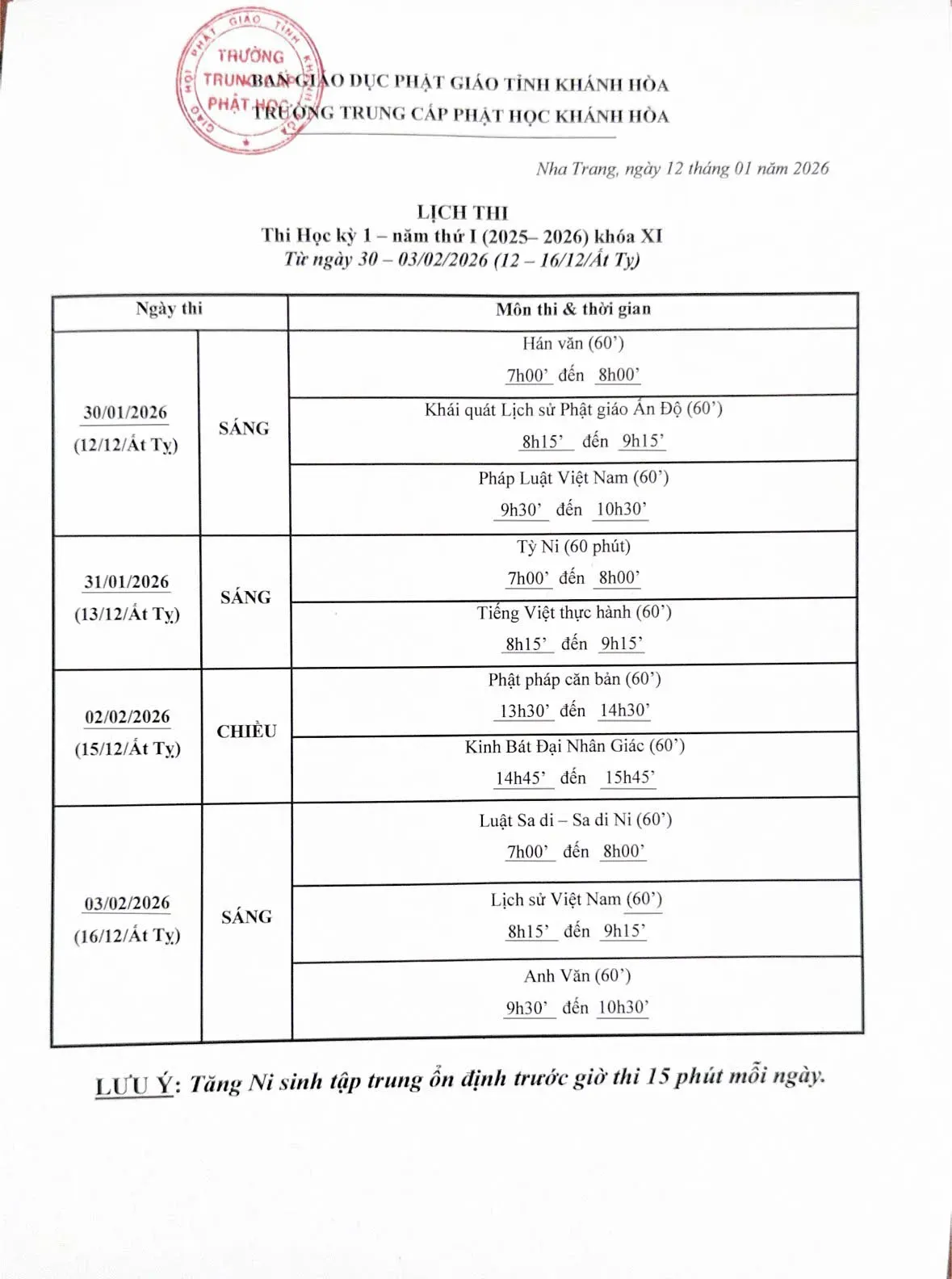 LỊCH THI HỌC KỲ 1 NĂM NHẤT - KHÓA XI (2025 - 2028)
