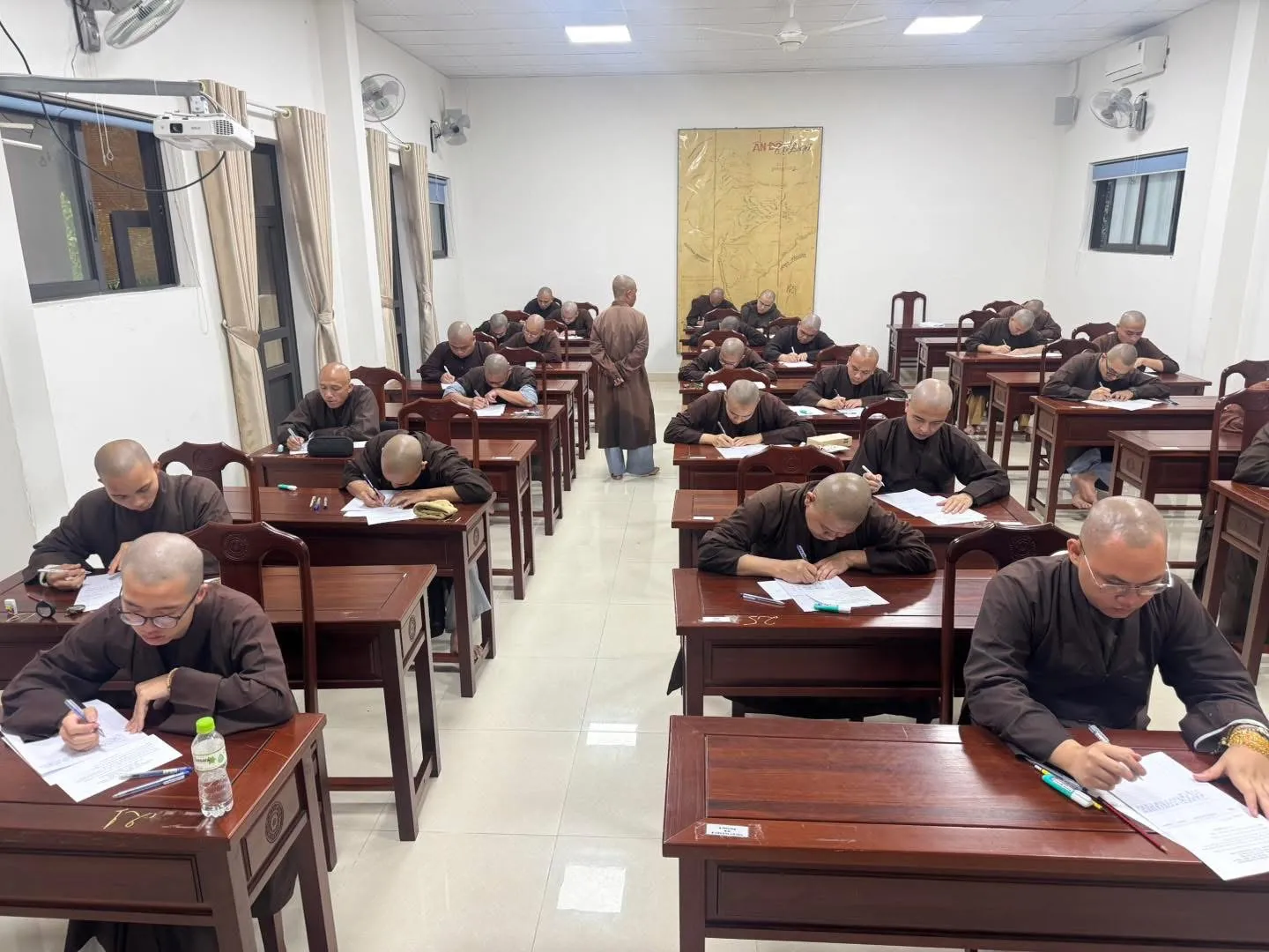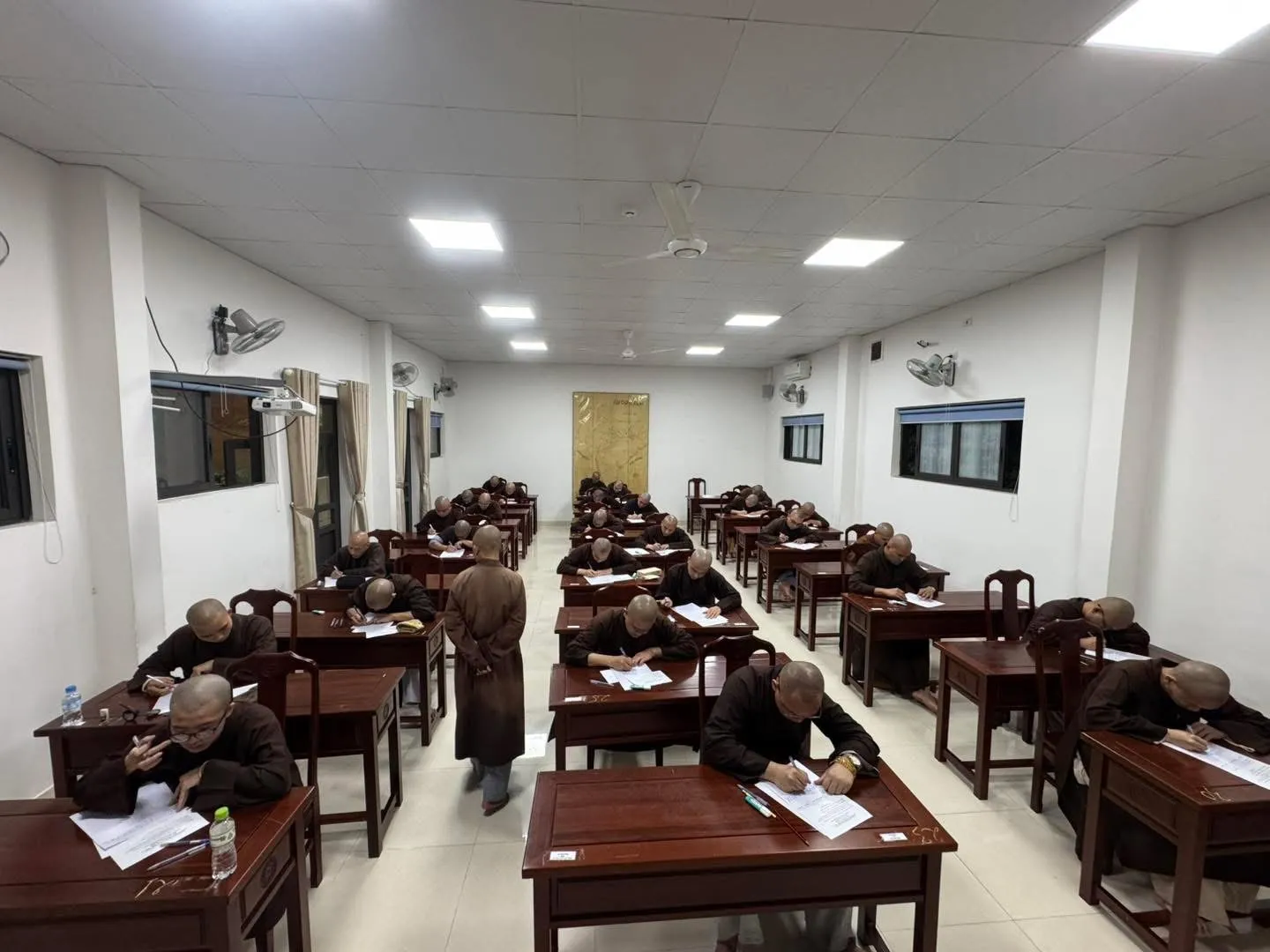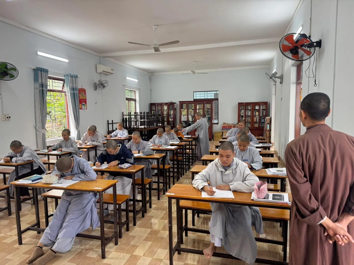 TĂNG NI SINH KHOÁ XI (2025-2028) TRƯỜNG TCPH KHÁNH HOÀ THI HỌC KỲ 1 NĂM THỨ NHẤT VÀ NGHỈ TẾT NGUYÊN ĐÁN BÍNH NGỌ 2026 Sáng ngày 30/01/2026 (nhằm ngày 12/12/Ất Tỵ) tất cả Tăng Ni sinh khóa XI (2025-2028) Trường TCPH Khánh Hoà bắt đầu thi học kỳ 1 năm thứ nhất. Kỳ thi trải qua 4 ngày với 10 môn thi: Phật pháp căn bản, Kinh Bát Đại Nhân giác, Khái quát Lịch sử Phật giáo Ấn Độ, Luật Tỳ Ni, Luật Sa di/Sa di Ni, Lịch sử Việt Nam, Pháp Luật Việt Nam, Tiếng Việt thực hành, Hán văn, Anh Văn. Hoà thượng Thích Minh Thông, Hiệu trưởng Nhà trường cùng Chư Tôn Đức Ban giám hiệu đã quang lâm kiểm tra phòng thi và nhắc nhở Tăng Ni sinh tập trung làm bài, không nên quay tài liệu, trung thực trong khi thi để đánh giá chính xác khả năng học tập của mỗi người, từ đó nhà trường mới đánh giá khách quan kết quả học tập của Tăng Ni sinh. Được biết, sau khi kết thúc kỳ thi Tăng Ni sinh sẽ được về thăm Bổn tự và gia đình, chuẩn bị đón chào năm mới Bính Ngọ. Nhà trường kính chúc toàn thể Chư Tôn Đức Ban giám hiệu, Quý vị giáo thọ sư và Chư Tôn Đức Tăng Ni Bổn sư, Y chỉ sư của Tăng Ni sinh đang theo học tại Bổn trường pháp thể khinh an, Phật sự hanh thông, vạn sự kiết tường, đón mừng một mùa Xuân Bính Ngọ tràn đầy hỷ lạc. Sau khi đón Tết Nguyên Đán, Tăng Ni sinh sẽ tập trung trở lại vào ngày 06/03/2026 (nhằm ngày 18 tháng giêng năm Bính Ngọ) để chuẩn bị chương trình học kỳ 2 năm thứ nhất của khoá XI bắt đầu từ ngày 09/03/2026 (nhằm ngày 21/01/Bính Ngọ) Tin&ảnh: Văn phòng Trường