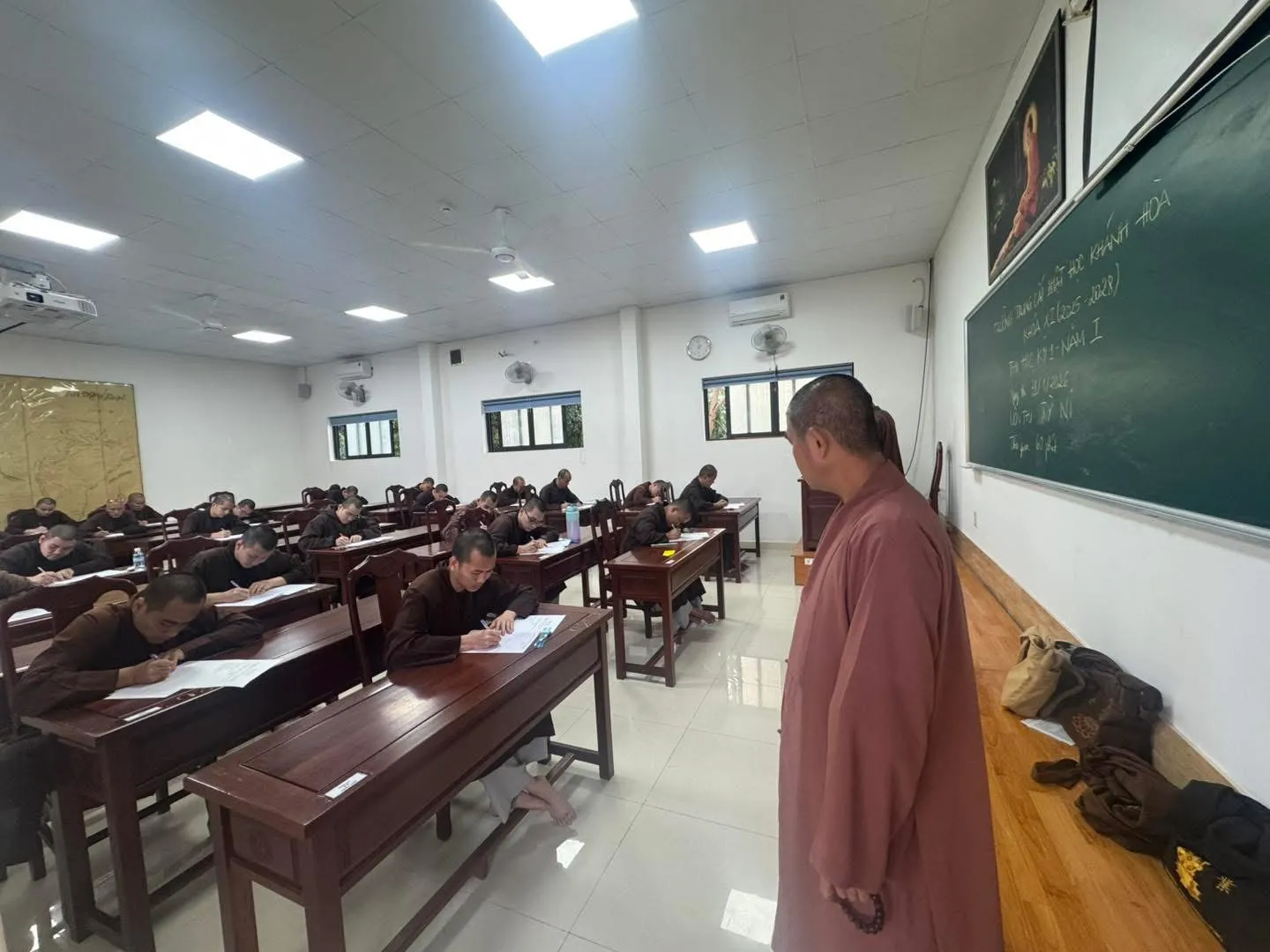 TĂNG NI SINH KHOÁ XI (2025-2028) TRƯỜNG TCPH KHÁNH HOÀ THI HỌC KỲ 1 NĂM THỨ NHẤT VÀ NGHỈ TẾT NGUYÊN ĐÁN BÍNH NGỌ 2026 Sáng ngày 30/01/2026 (nhằm ngày 12/12/Ất Tỵ) tất cả Tăng Ni sinh khóa XI (2025-2028) Trường TCPH Khánh Hoà bắt đầu thi học kỳ 1 năm thứ nhất. Kỳ thi trải qua 4 ngày với 10 môn thi: Phật pháp căn bản, Kinh Bát Đại Nhân giác, Khái quát Lịch sử Phật giáo Ấn Độ, Luật Tỳ Ni, Luật Sa di/Sa di Ni, Lịch sử Việt Nam, Pháp Luật Việt Nam, Tiếng Việt thực hành, Hán văn, Anh Văn. Hoà thượng Thích Minh Thông, Hiệu trưởng Nhà trường cùng Chư Tôn Đức Ban giám hiệu đã quang lâm kiểm tra phòng thi và nhắc nhở Tăng Ni sinh tập trung làm bài, không nên quay tài liệu, trung thực trong khi thi để đánh giá chính xác khả năng học tập của mỗi người, từ đó nhà trường mới đánh giá khách quan kết quả học tập của Tăng Ni sinh. Được biết, sau khi kết thúc kỳ thi Tăng Ni sinh sẽ được về thăm Bổn tự và gia đình, chuẩn bị đón chào năm mới Bính Ngọ. Nhà trường kính chúc toàn thể Chư Tôn Đức Ban giám hiệu, Quý vị giáo thọ sư và Chư Tôn Đức Tăng Ni Bổn sư, Y chỉ sư của Tăng Ni sinh đang theo học tại Bổn trường pháp thể khinh an, Phật sự hanh thông, vạn sự kiết tường, đón mừng một mùa Xuân Bính Ngọ tràn đầy hỷ lạc. Sau khi đón Tết Nguyên Đán, Tăng Ni sinh sẽ tập trung trở lại vào ngày 06/03/2026 (nhằm ngày 18 tháng giêng năm Bính Ngọ) để chuẩn bị chương trình học kỳ 2 năm thứ nhất của khoá XI bắt đầu từ ngày 09/03/2026 (nhằm ngày 21/01/Bính Ngọ) Tin&ảnh: Văn phòng Trường